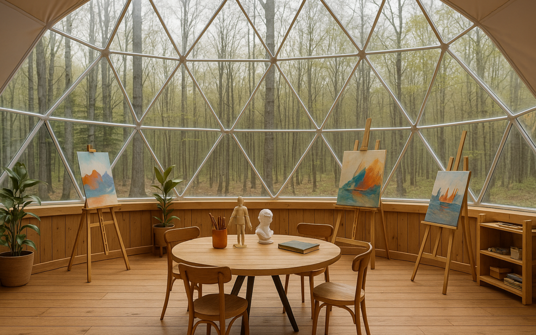 En un mundo donde el arte busca cada vez más romper con los espacios convencionales, los domos geodésicos emergen como una alternativa sorprendente. Por su forma única, acústica natural y capacidad para generar experiencias inmersivas los convierten en talleres de arte vanguardistas, ideales para artistas que buscan fusionar espacio, luz, sonido y expresión.