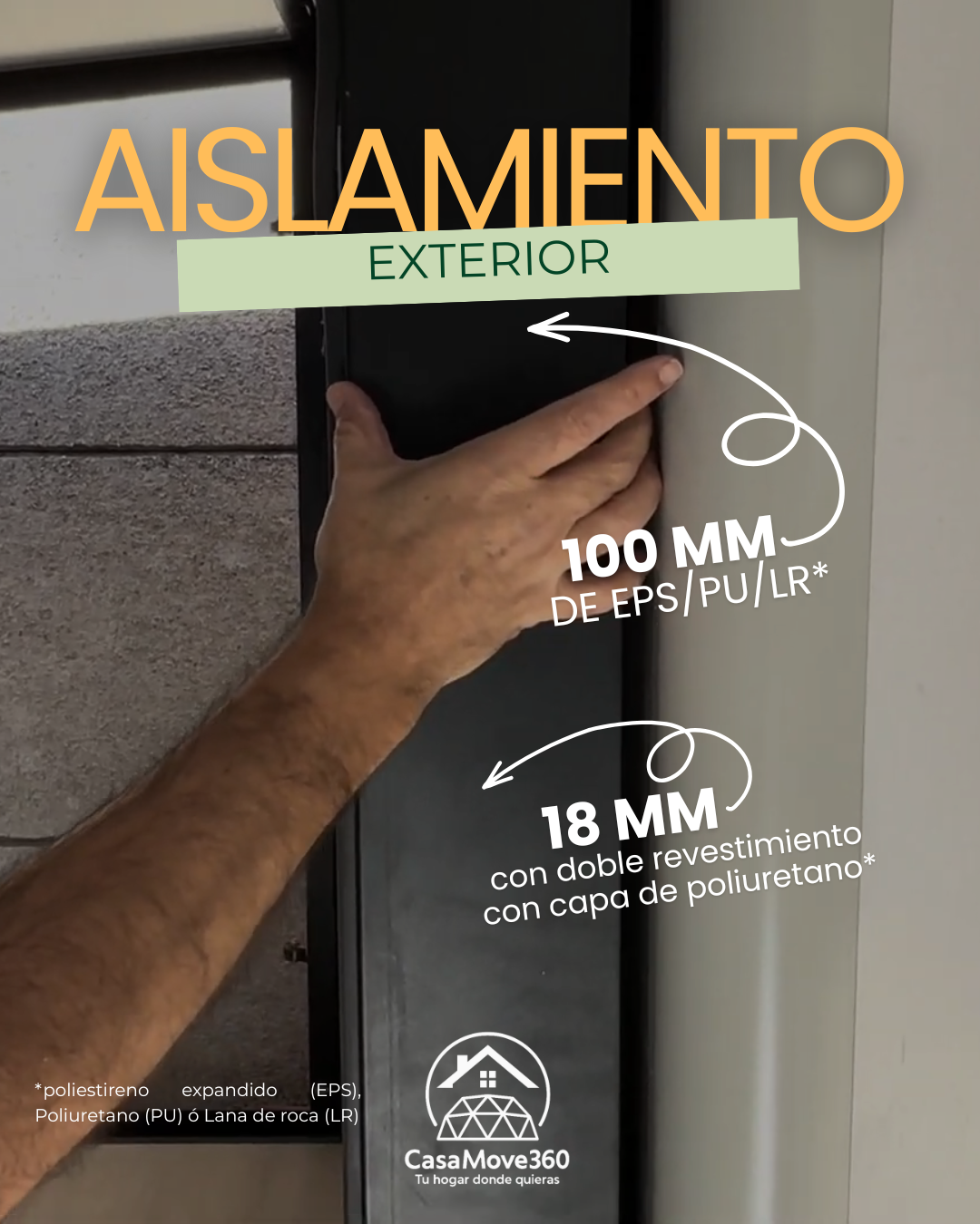 El aislamiento que usamos en nuestras casas destacan por tener mucho mejor aislamiento que las lowcost que venden otros proveedores, en concreto las paredes exteriores de las nuestras son de 100mm de espesor con núcleo de EPS y llevan un revestimiento interior de lámina de carbono y otro exterior de 16mm con lámina plata de aislamiento y núcleo de poliuretano (PU). Además ofrecemos la posibilidad de incorporar al interior del doble tejado planchas de aislante adicionales y fabricar el núcleo de los paneles interiores de PU. Ideal para ubicarlas en zonas donde el clima es generalmente frío.
